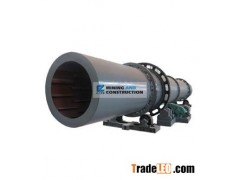 The dryer is made up of a large, rotating cylindrical tube, usually supported by concrete columns or steel beams. The dryer slopes slightly so that the discharge end is lower than the material feed end in order to convey the material through the dryer under gravity. Material to be dried enters the dryer, and as the dryer rotates, the material is lifted up by a series of internal fins lining the inner wall of the dryer. When the material gets high enough to roll back off the fins, it falls back down to the bottom of the dryer, passing through the hot gas stream as it falls.